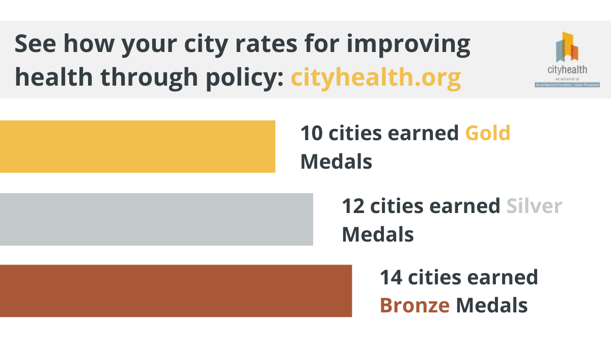 On Tuesday, December 8, CityHealth released its policy ratings of the nation’s 40 largest cities. The ratings are determined by an evaluation of nine health-related policies that help residents and communities thrive.